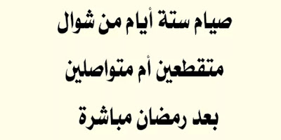 السؤال : السلام عليكم ورحمة الله وبركاته .. يا شيخ انا ممكن اصوم الستة البيض متقطعين يعنى اتنين وخميس والا الستة بعد رمضان على طول وهل الأجر هايقل اذا قطعتهم  ؟